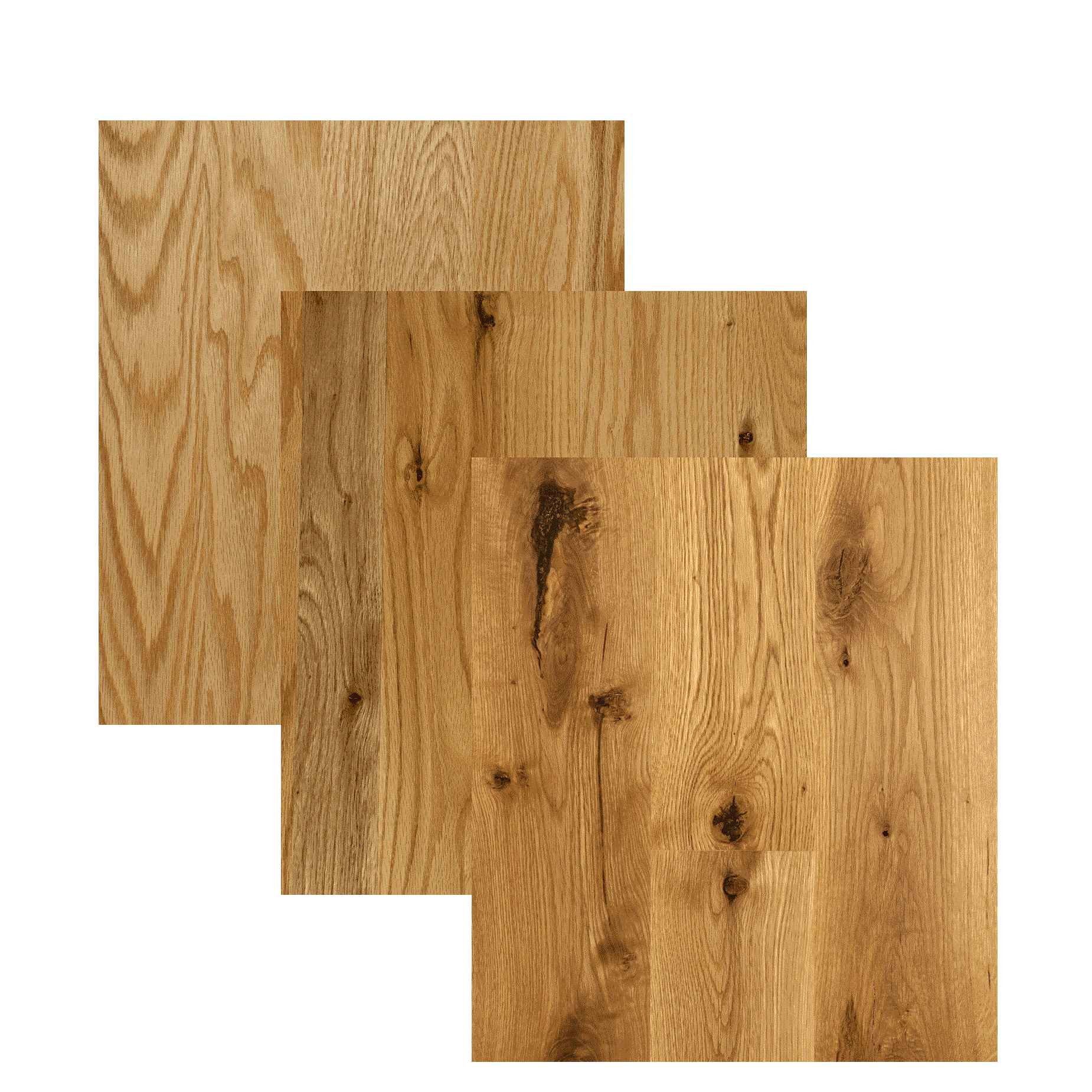 In our Domestic species we offer Clear Grade which contains no knots or other forms of character, and very minimal color variation. Our Natural Grade can contain small to medium solid knots, other forms of light character, and moderate color variation. Character Grade can include larger knots, other moderate character, and more color variation. Rustic Grade is offered on a very limited basis and will contain larger knots, knot holes, other heavy character, and unlimited color variation. If you want something different, select Desired Appearance and specify in notes.